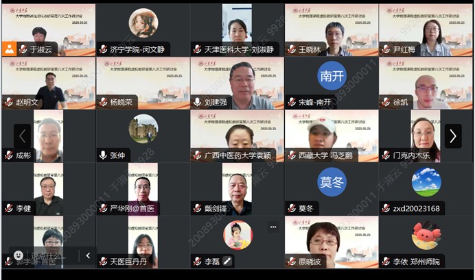 2025年5月25日,山东大学大学物理课程虚拟教研室成功举办第八次线上研讨会。全国几十所高校的90余位教师参加了本次会议。本次会议的主题是同课异构教学展示与研讨。开幕式由虚拟教研室主任刘建强教授主持,山东物理学会秘书长、山东大学物理学院副院长赵明文教授致开幕词。