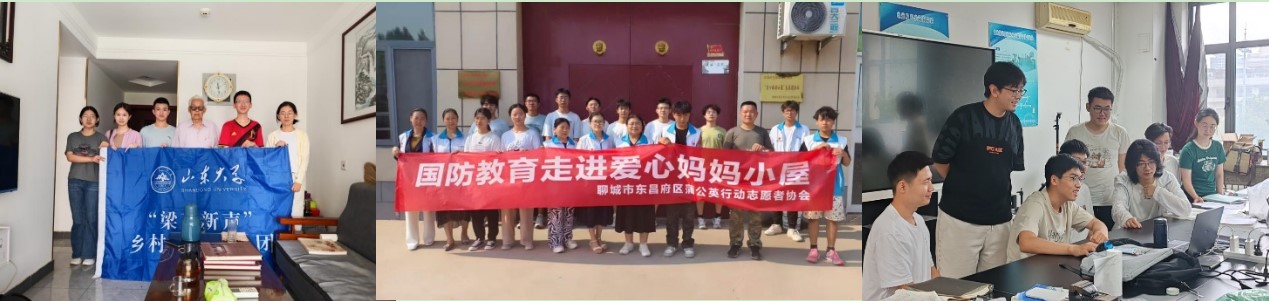 “萤火聊原”“聊唱青春”两支社会实践队组团走入山东省聊城市教育资源相对落后的五圣村开展支教活动,通过与聊城市东昌府区蒲公英志愿者协会、爱心妈妈小屋合作,先后打造“国防教育进课堂”和“栀子花小课堂——女性生理健康分享”等特色课程。“生物课上没有课本,老师就在黑板上手绘显微镜”,“做错了没关系呀,我们可以再来一遍”。队员们发挥专业优势,在语文、物理、化学、生物等课程上开展学业帮扶,每一个红笔圈画的印记都化作这个暑期实践队员们与乡村学生共同成长的生动注脚。