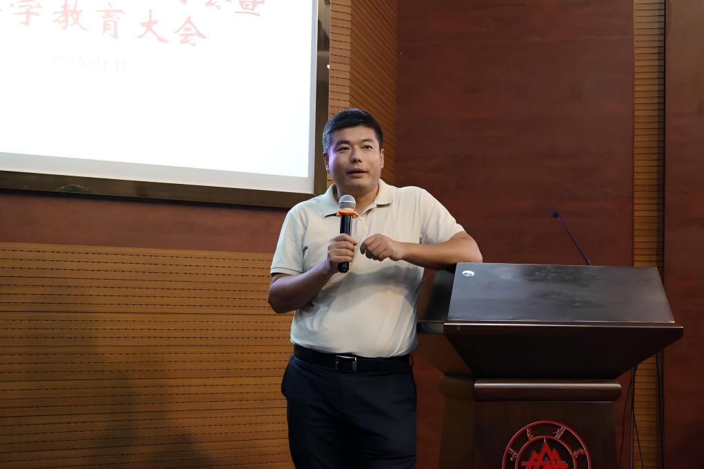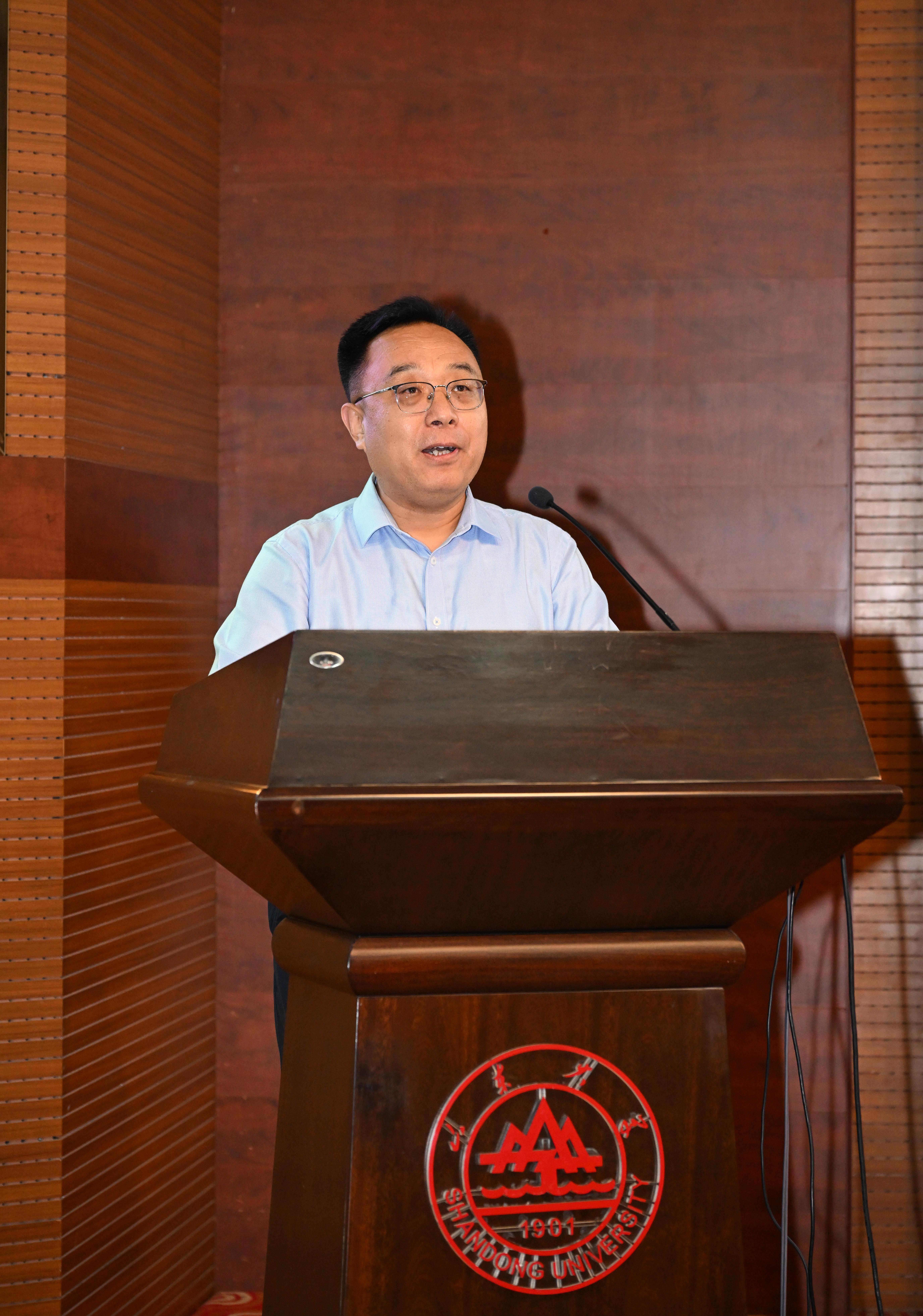 大会第一阶段伊始,司宗国院长代表学院致欢迎辞。他回顾了物理学院自1901年山东大学堂格物学创办以来的办学历程,深情讲述了王淦昌、束星北等一批科学巨匠在此执教的往事,分享了马祖光、彭实戈等院士校友的培养成就。他重点介绍了学院在学科建设、教学科研等方面的显著实力并勉励新生,要以“格物致知”的求真精神体会物理之美,以“敢闯敢试”的锐气勇探科研新域,以“胸怀家国”的格局书写人生新篇,努力成长为立足科学、贡献国家的栋梁之材。