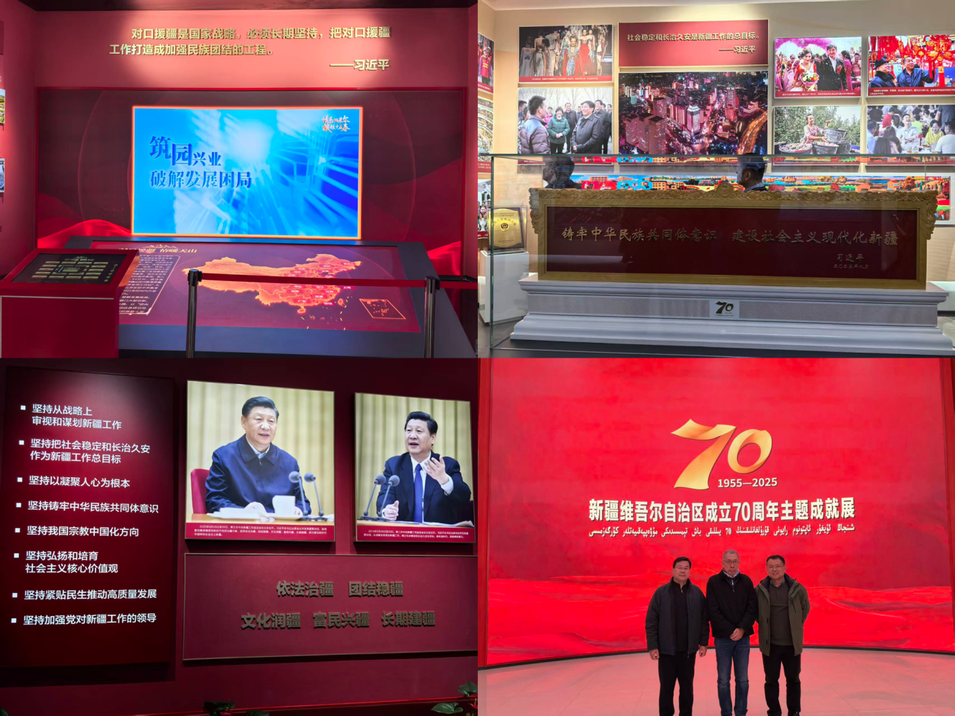 15日下午,我院代表参观了“新疆维吾尔自治区70周年成就展览馆”,系统回顾在党的领导下新疆各项事业取得的历史性成就、发生的历史性变革。展陈面积5500余平方米,共展出图片1600余幅、实物和模型1400余件、多媒体视频和场景还原等150余个。一幅幅图片、一组组数据,生动展示了新疆在经济社会发展、民族团结、科技进步等方面取得的辉煌成绩,进一步激发了大家服务新时代治疆方略的责任感与使命感。