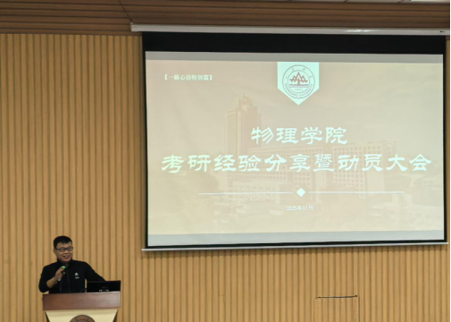 活动中,王彬老师面向备考学生发表动员讲话。他结合近年来考研形势及物理学院学生特点,从专业角度提出科学备考建议,鼓励同学们以平稳心态、合理方法投入复习。他强调,备考过程中既要保持努力与专注,也要注重劳逸结合,以最佳状态迎接挑战。他温暖有力的话语为在场同学注入了信心与动力。
